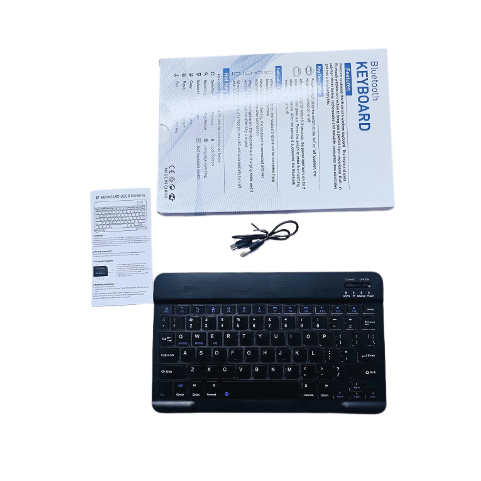 Rechargeable portable keyboard with Bluetooth connectivity.