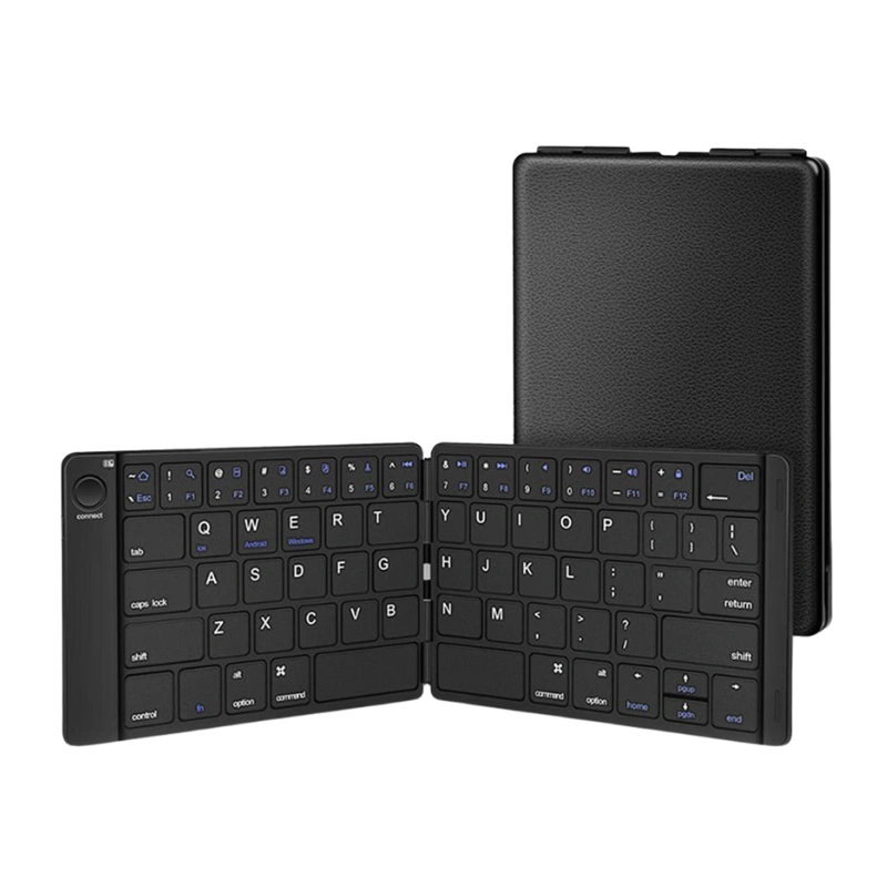 Foldable Bluetooth keyboard for mobile and tablet typing.