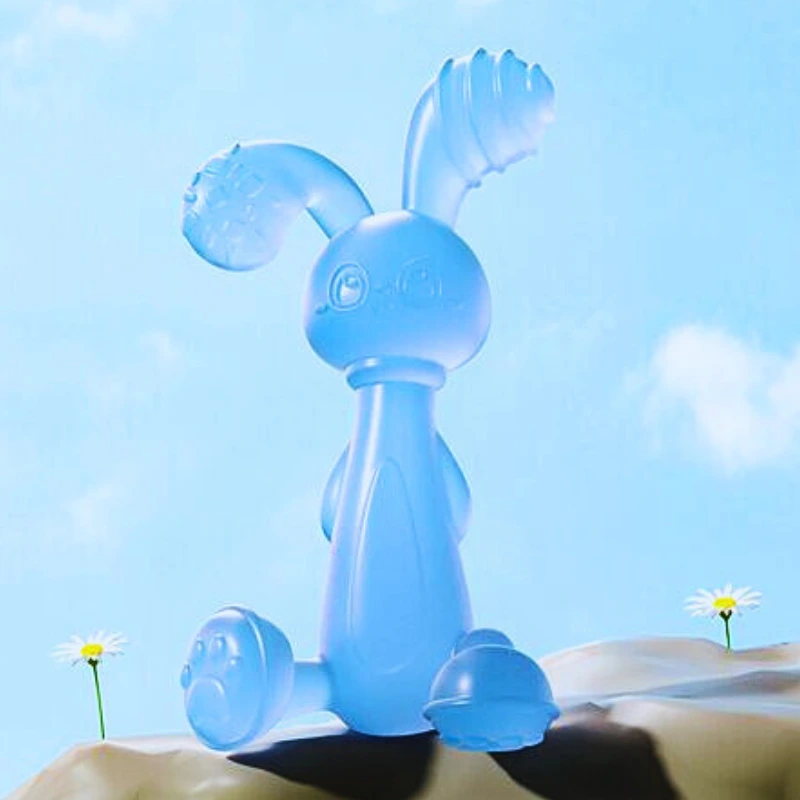 Soft rabbit-shaped silicone teether rattle. Origin: China