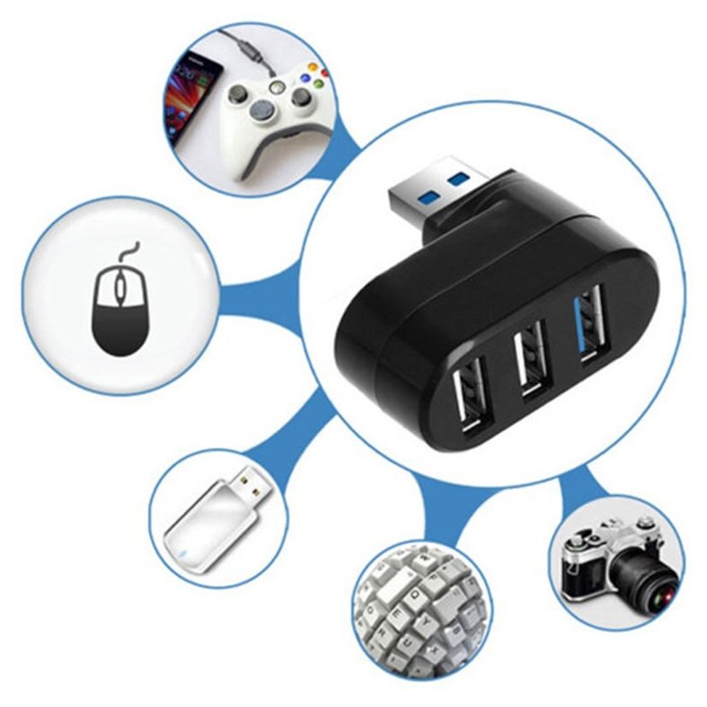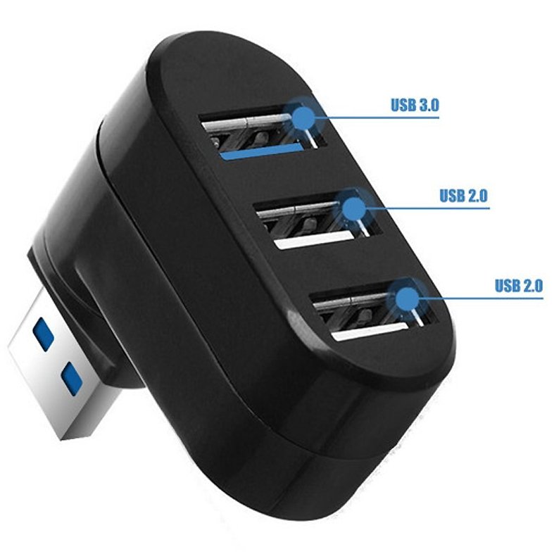 Mini USB hub with 3 ports for fast data transfer.