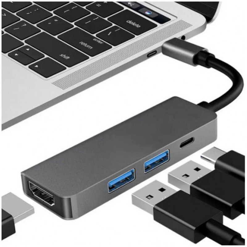 4-in-1 Type-C hub for multi-device connectivity.