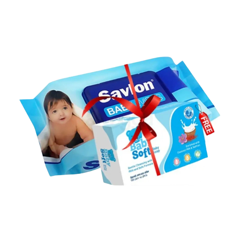 Savlon Baby Wipe 80s Pouch (Buy 1 Get 1 Baby Soft Baby Soap 75gm Free)