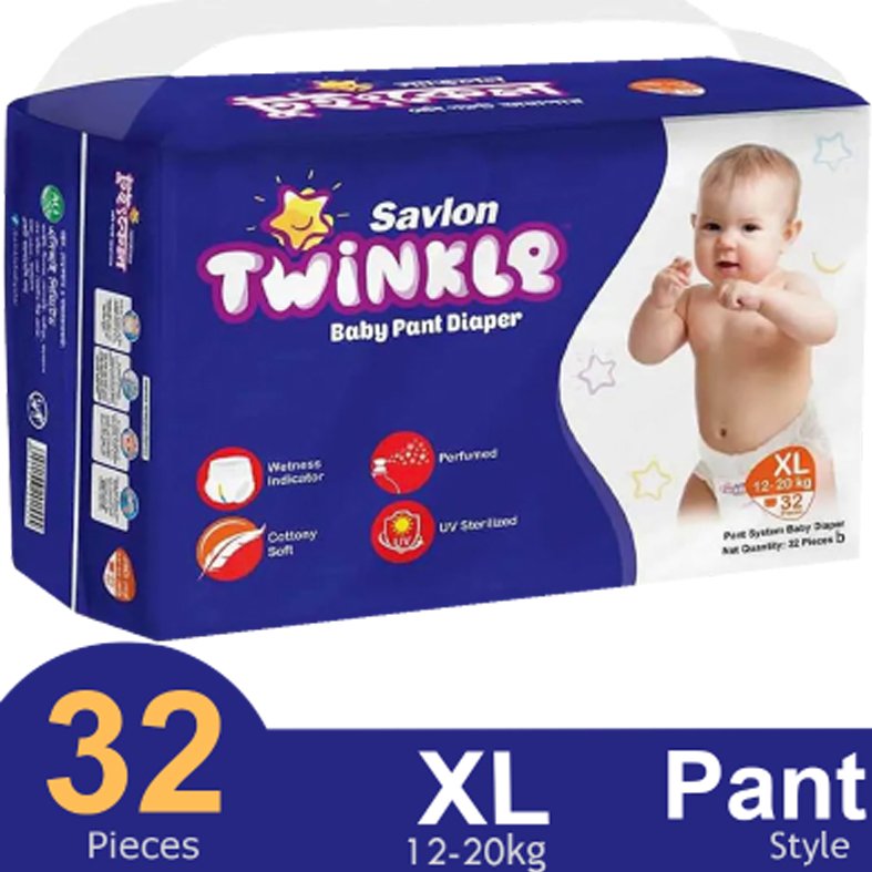 Savlon Twinkle Pant System Baby Diaper (Size XL) (12–20 kg) (32 Pcs)