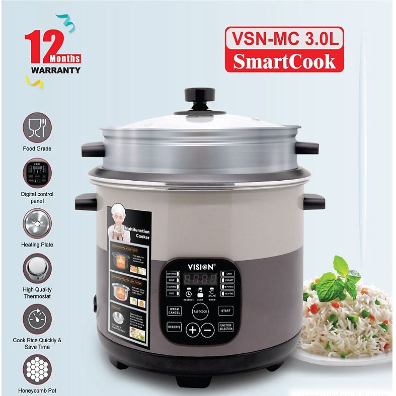 VISION 1100W MC-3.0 Liter Stainless Still Smart Rice Cooker with Thermal Safety Fuse- Double Pot